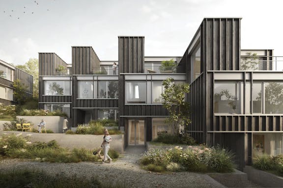 Inmitten der sanften Hügellandschaft zwischen Forch-Denkmal und Greifensee fügt sich das Projekt sensibel in die Topographie ein und betont die einzigartigen Charakteristika der Umgebung. Inspiriert von Siedlungen wie Halen verbindet es Verdichtung mit qualitätsvollem Wohnen in der Gemeinschaft. Die leicht versetzten Gebäude folgen der natürlichen Hanglage und stärken so die Wahrnehmung individueller Einheiten.