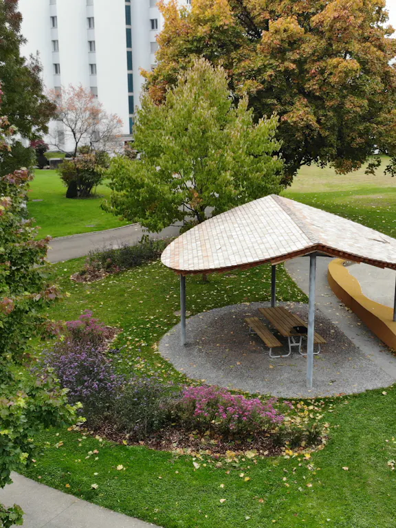 Das Freiraumkonzept beruht auf einer verbindenden Platzfläche zwischen den Gebäuden und einem Garten, der alles umfasst. Die zentrale Mitte erschliesst die Hauszugänge und ist Ort der nachbarschaftlichen Begegnung. Ein markanter Amberbaum überstrahlt …