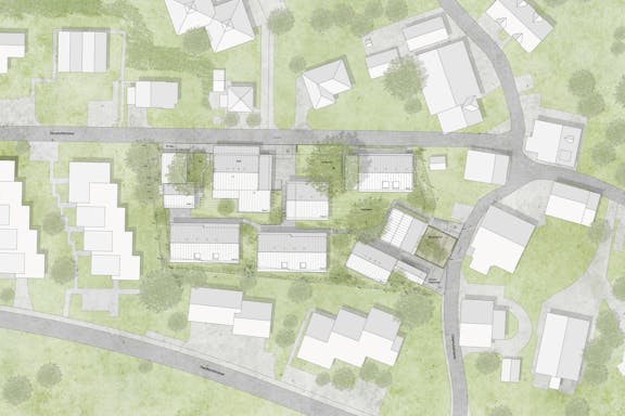 Die neuen Häuser ergänzen das Siedlungsmuster behutsam, während offene Wiesen und gezielt platzierte Gehölze für Privatsphäre und eine fließende Verbindung sorgen. Die Architektur, inspiriert von historischen Bauernhäusern, vereint Bestand und Neubauten zu einem harmonischen Ensemble mit einzigartiger Atmosphäre.